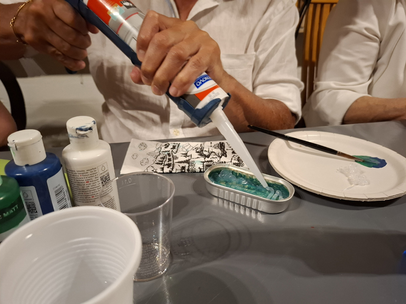 nous avons appris à fabriquer de l'eau avec du silicone transparent.