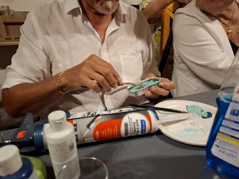 Cours de cactus avec de la pâte Fimo. Pour les épines des cactus, nous avons pris des poils, de brosse à dents